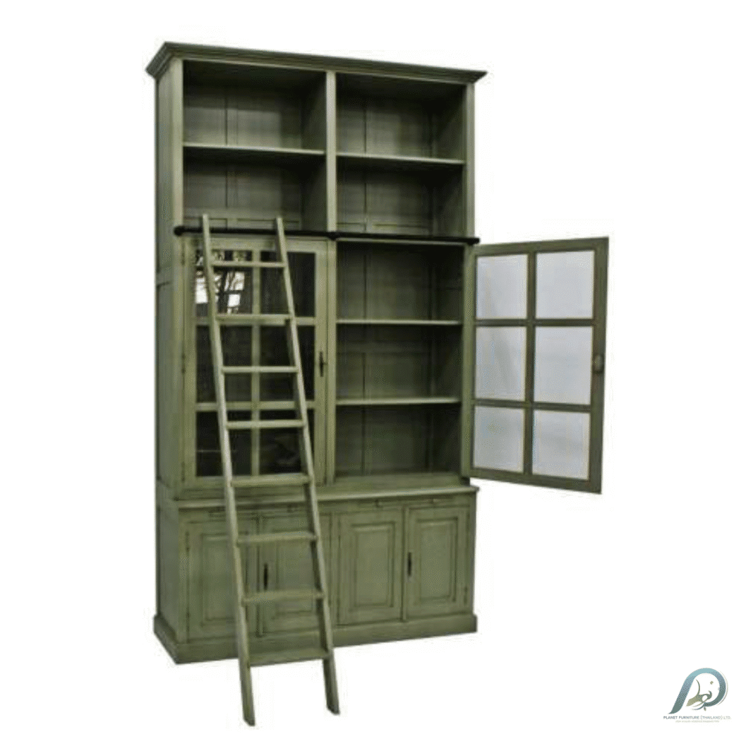MD9187 Bookshelf with Ladder ชั้นวางหนังสือไม้แท้ทรงสูงพร้อมบันได
