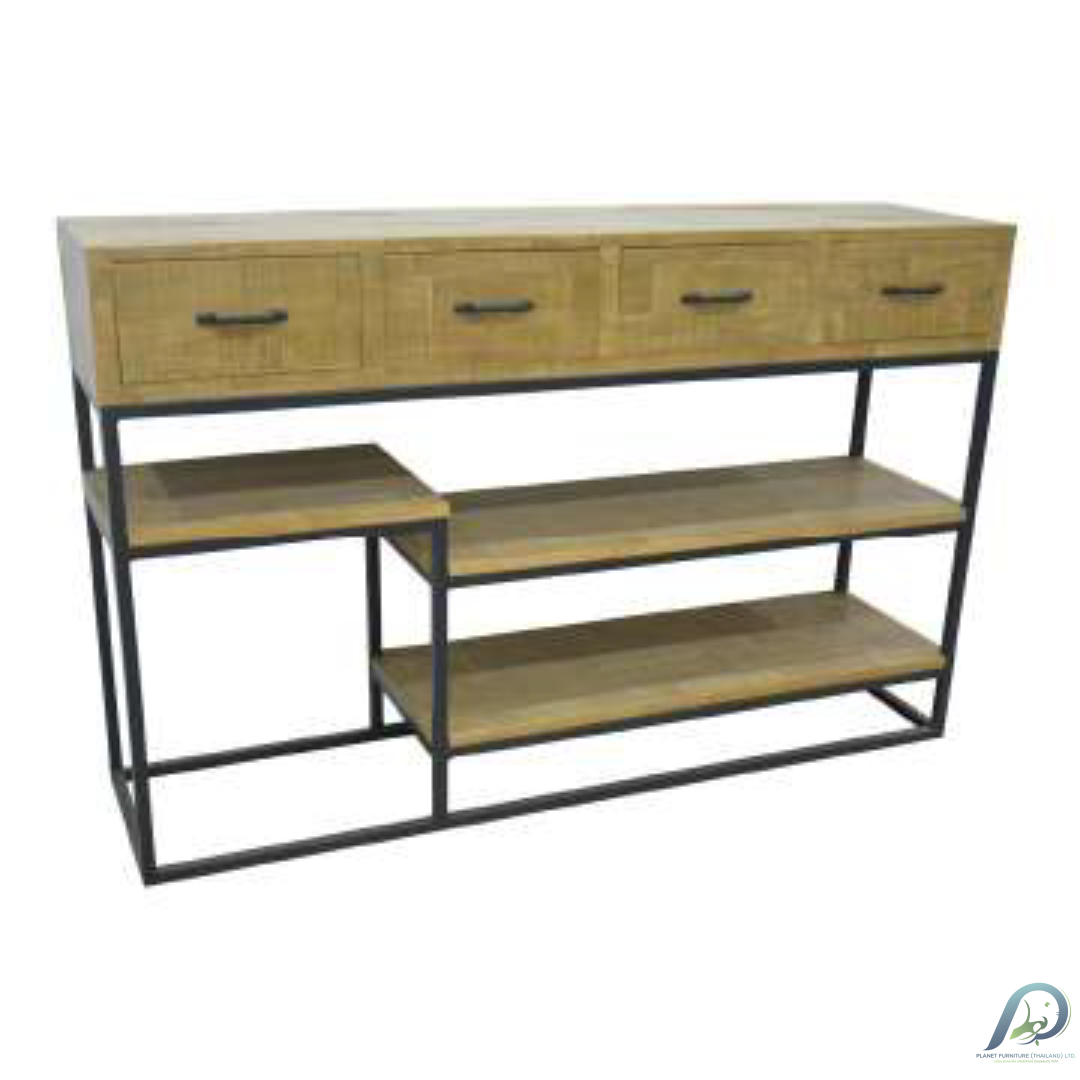 โต๊ะคอนโซลไม้แท้ 4 ลิ้นชัก รุ่น MD7289 ขนาด 140x35x90 ซม. จาก Liverpool Collection ดีไซน์ยาวเพรียวประหยัดพื้นที่ เหมาะสำหรับโถงทางเดิน แข็งแรงทนทาน ผลิตโดยโรงงานเฟอร์นิเจอร์ไม้ชลบุรี Planet Furniture