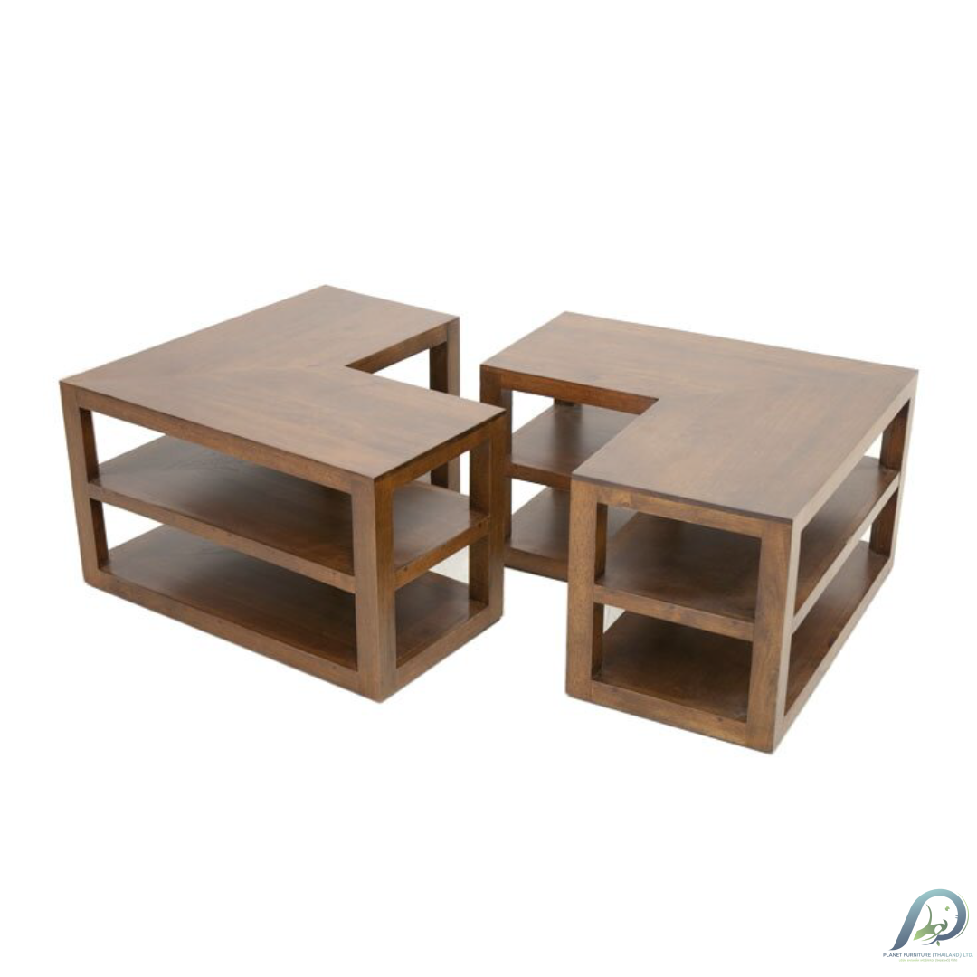MD8874 ชุดโต๊ะกลางไม้แท้ 2 ชิ้น (Set of 2) ขนาด 105 x 70 x 40 cm ดีไซน์ Free Form โค้งมนสวยงาม งานไม้จริงคุณภาพจาก Planet Furniture แข็งแรง ทนทาน สร้างมิติใหม่ให้ห้องนั่งเล่น