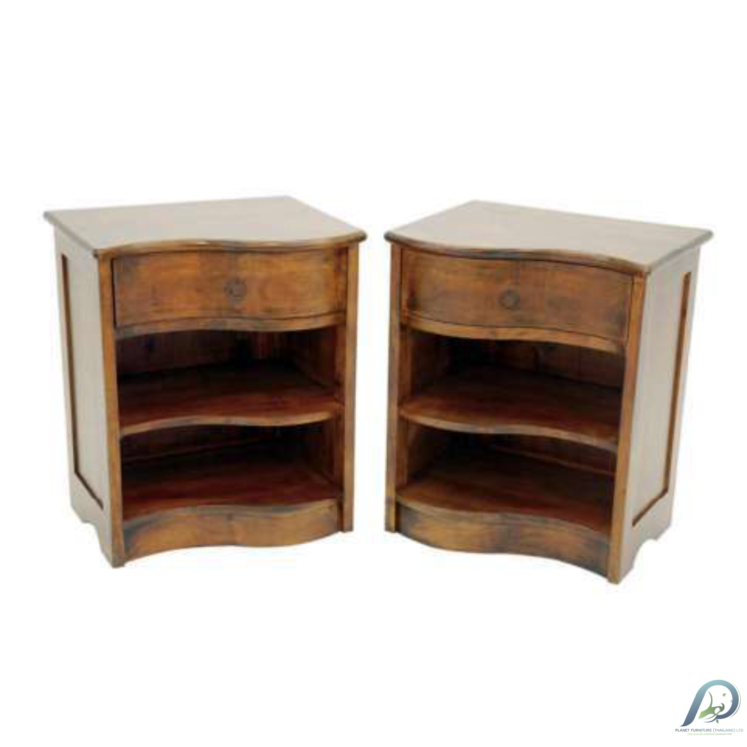 ยกระดับความสมบูรณ์แบบให้กับห้องนอนของคุณด้วย MD8402 เซตโต๊ะข้างเตียงไม้แท้ จาก Fidji Collection ที่มาเป็นคู่ทั้งฝั่งซ้ายและฝั่งขวา เพื่อสร้างความสมดุลและความสวยงามที่ลงตัวให้กับเตียงนอนของคุณ ผลิตจากไม้แท้ (Real Wood) 100% ด้วยงานฝีมือคุณภาพจากโรงงาน Planet Furniture ที่เน้นความแข็งแรงทนทานและความประณีตในทุกรายละเอียด