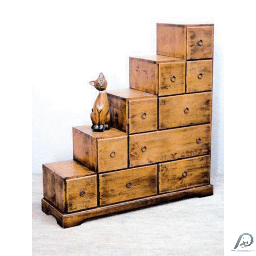 MD8157G ตู้ลิ้นชักทรงขั้นบันได (ซ้าย) 10 ลิ้นชัก (Step Tansu)